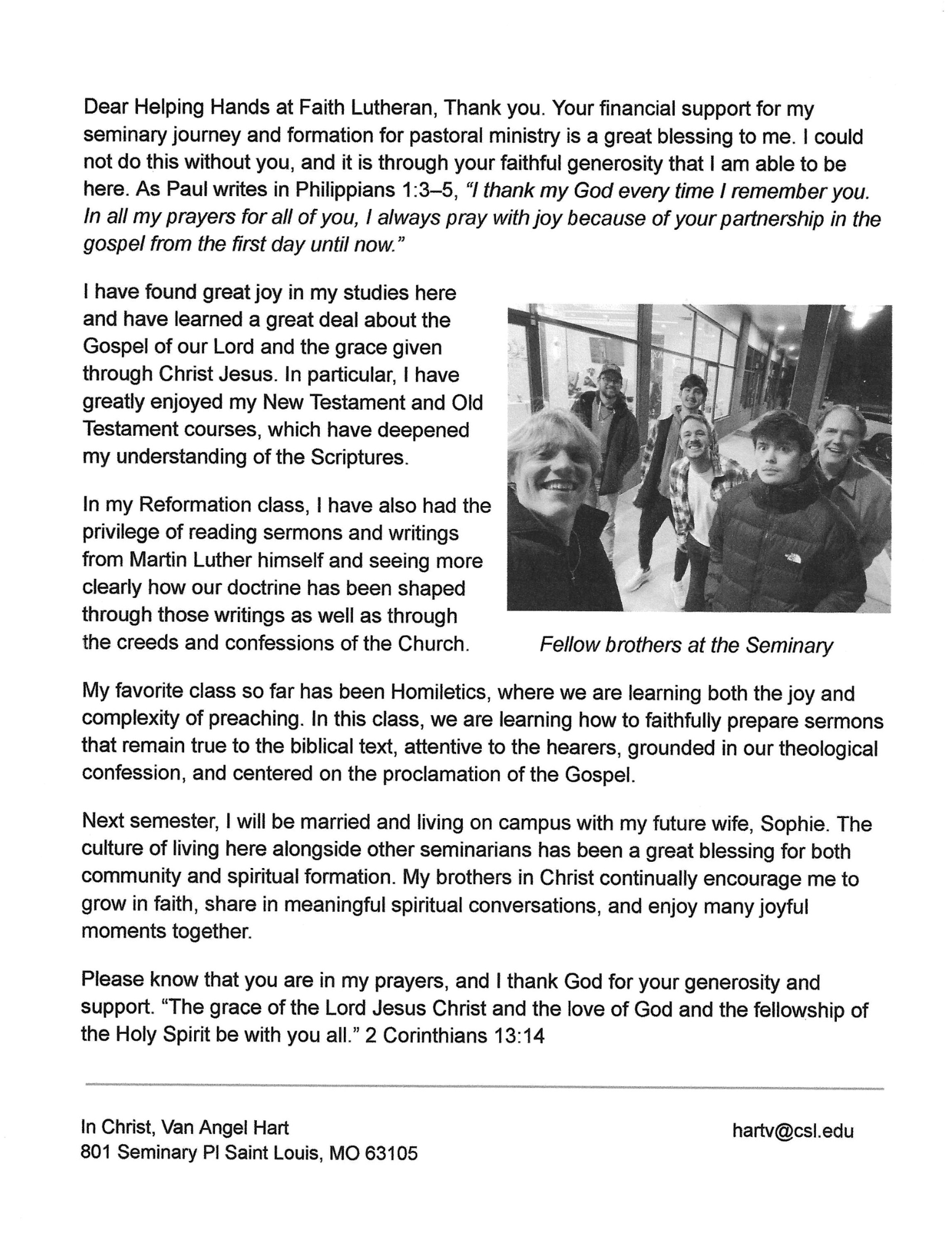 Thank you message from Seminarian Angel Hart